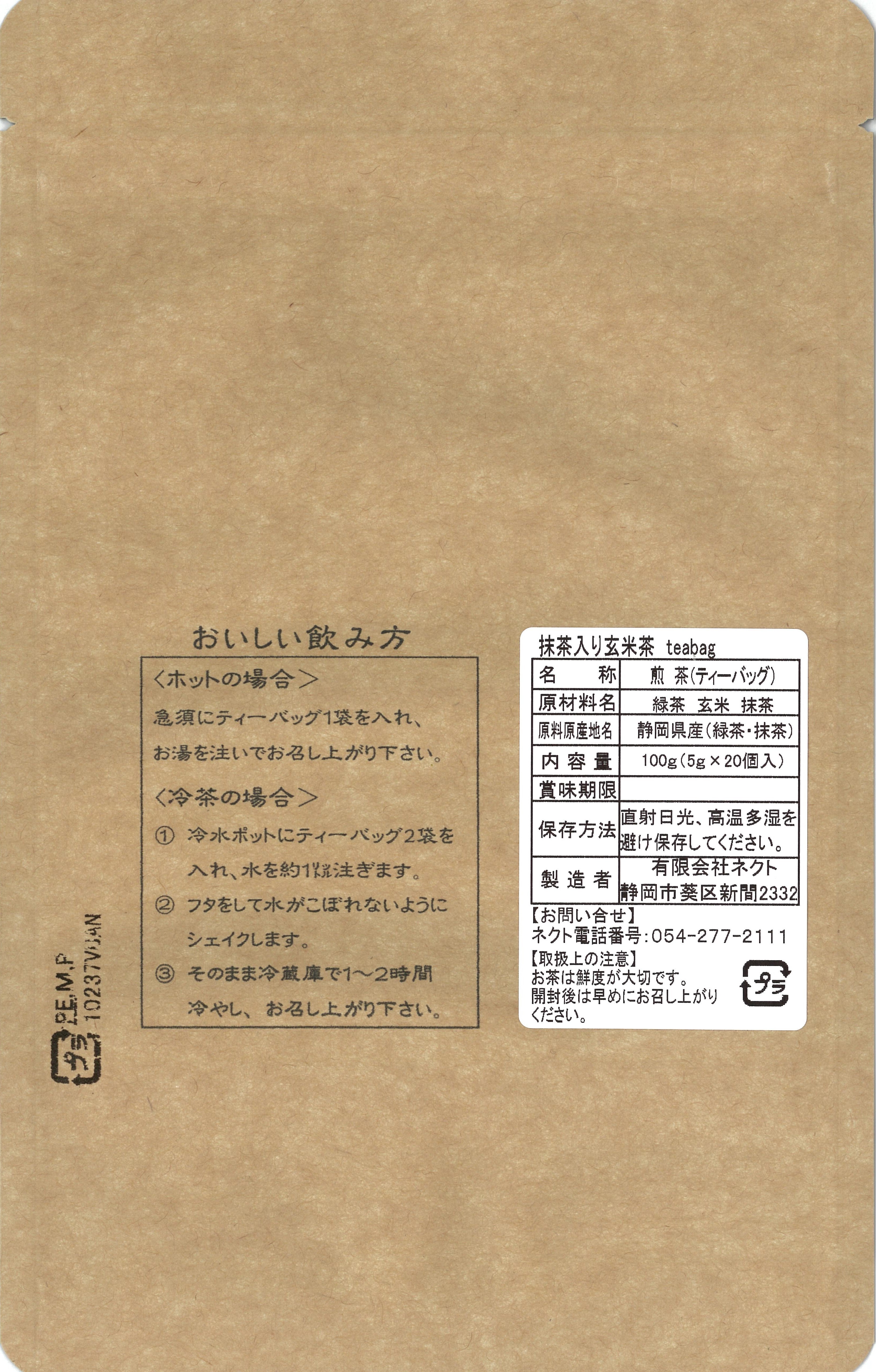 5g×20個入。便利なティーバッグタイプの抹茶入玄米茶です。
